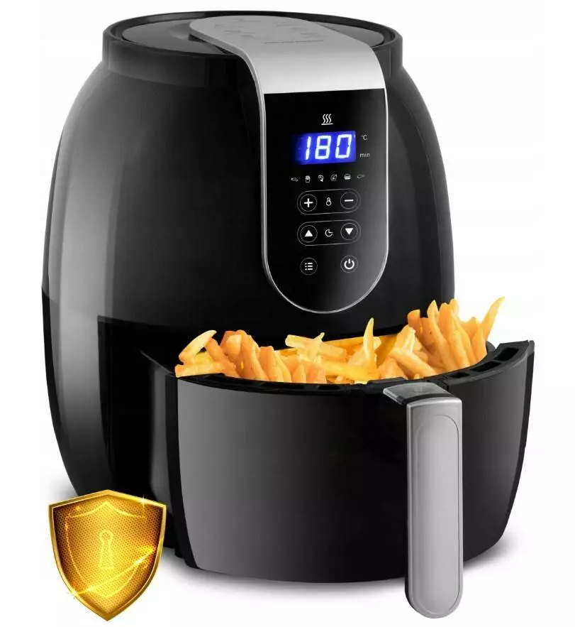 відповідає всім стандартам безпеки, має сертифікати CE, GS, LFGB, ROHS, які підтверджують, що фритюрниця є надійним і безпечним електричним пристроєм, призначеним для контакту з харчовими продуктами і не містить шкідливих речовин.