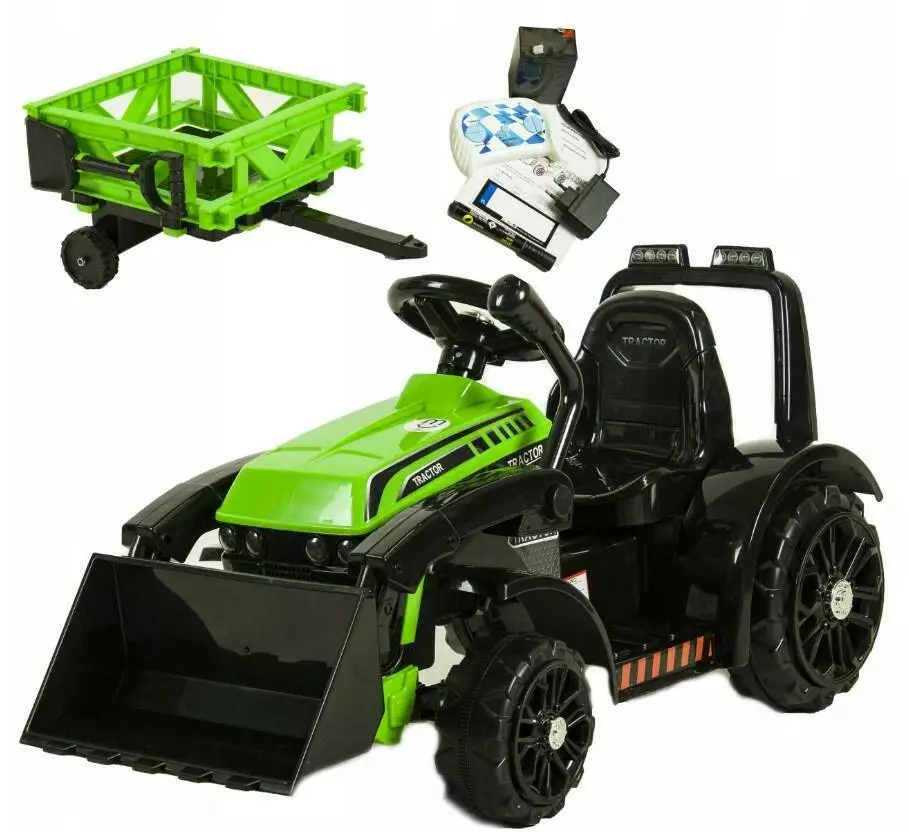 Акумуляторний трактор, дистанційне керування 2,4 G, знімний причіп, пересувний ківш, лопата, світло, мелодії