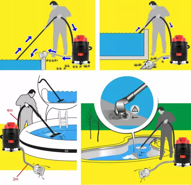 Призначений для зручного очищення плавальних басейнів і ставків від всіх забруднень, як-от мул, залишки рослин, водорості та листя. Бак пристрою вміщує до 30 літрів.