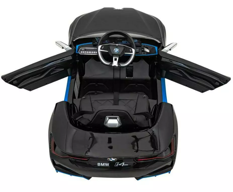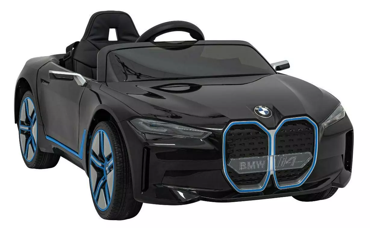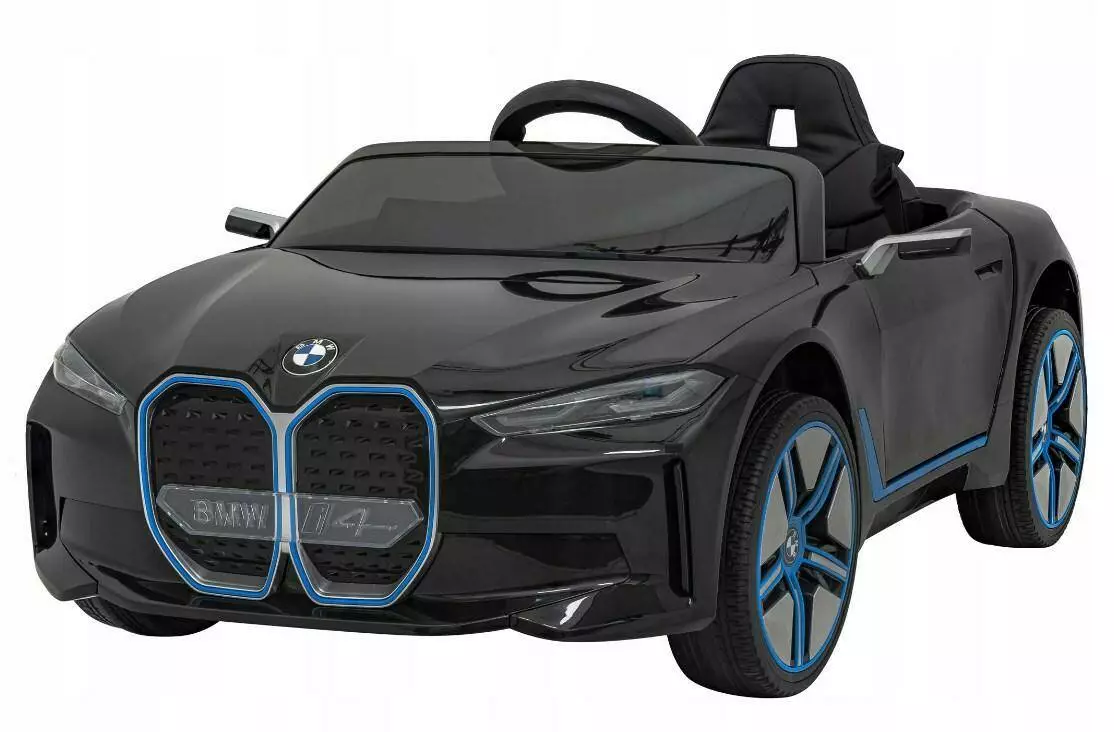 Автомобіль на акумуляторі BMW i4, М'які диски EVA, Шкіра, USB-вхід, Колір чорний