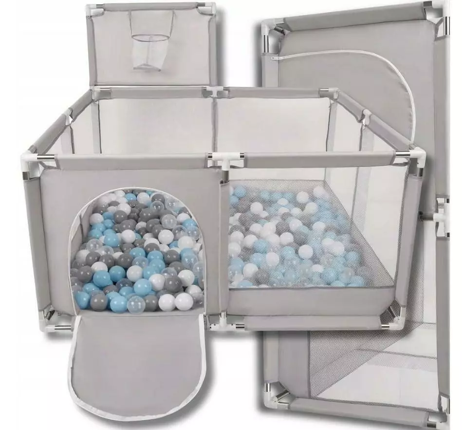✅Зручні елементи : манеж має зручну блискавку, яка дозволяє легко відкривати та закривати дверцята. У набір також входить додатковий кошик для гри з м'ячами, що збагачує ігрові можливості дитини.
