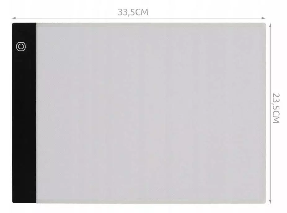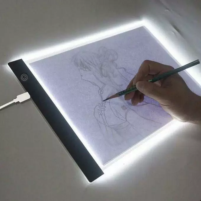 Дошка для малювання виготовлена з акрилу, вона міцна і довговічна. Рівномірне освітлення на пластині фільтрує шкідливі промені, захищаючи очі від несприятливого освітлення. Ми можемо використовувати дошку протягом багатьох годин без напруги очей. Вся дошка ретельно підсвічується - скопіювати малюнок легко, що робить його чудовим для роботи! Плата живиться від кабелю USB - ми можемо підключити її до комп'ютера, ноутбука, павербанка або розетки. Він споживає мало електроенергії, тому ви можете взяти його на вулицю та використовувати з павербанком. Він легкий, тому транспортувати його не проблема, легко поміститься в сумку.
