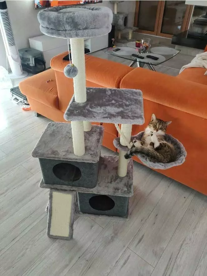 Головна перевага — затишний будиночок. Додатковий варіант відпочинку — лігво на 3-му рівні кігтеточки. Кошеня зможе вільно відпочивати. 5 рівнів спостереження задовольнять котячу цікавість.
