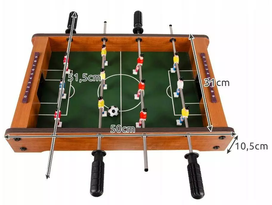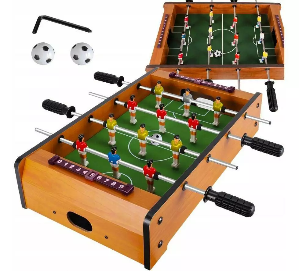Захоплююча гра, яку люблять діти, підлітки та дорослі. Міні-гра в настільний футбол — це чудовий спосіб об'єднати покоління . Напевно, немає людини, яка б не хотіла спробувати свої сили в грі. Тут вам не потрібно розрізняти кутовий і пенальті, щоб отримати велике задоволення. Потрібні лише рефлекси, точність рухів і трохи удачі. Настільний футбол - чудовий варіант подарунка для кожного любителя спорту та змагань . Він ідеально підходить для гри вдома, а також на вечірках, у шкільних клубах або в аркадах. Гра ідеально підійде як різдвяний подарунок, на день народження чи будь-який інший випадок.
