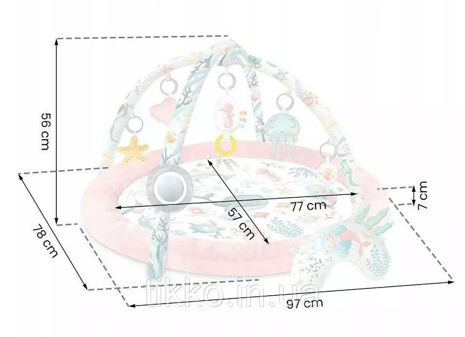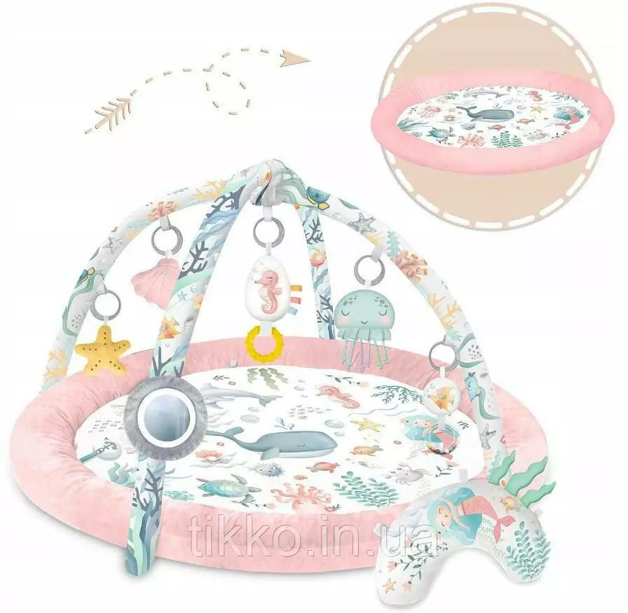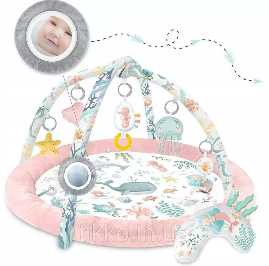 в набір входить: килимок, вбудоване сповивання, 2 пов'язки, 7 багатофункціональних іграшок,