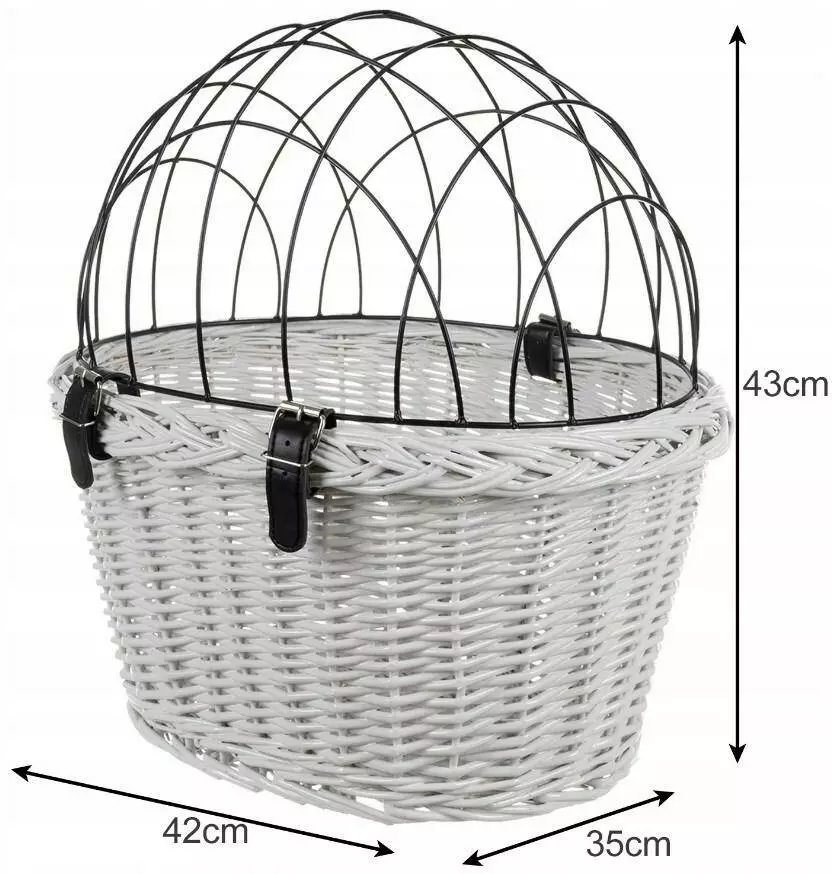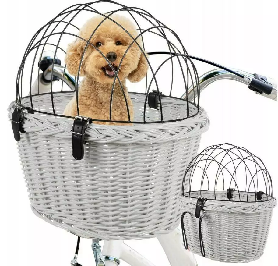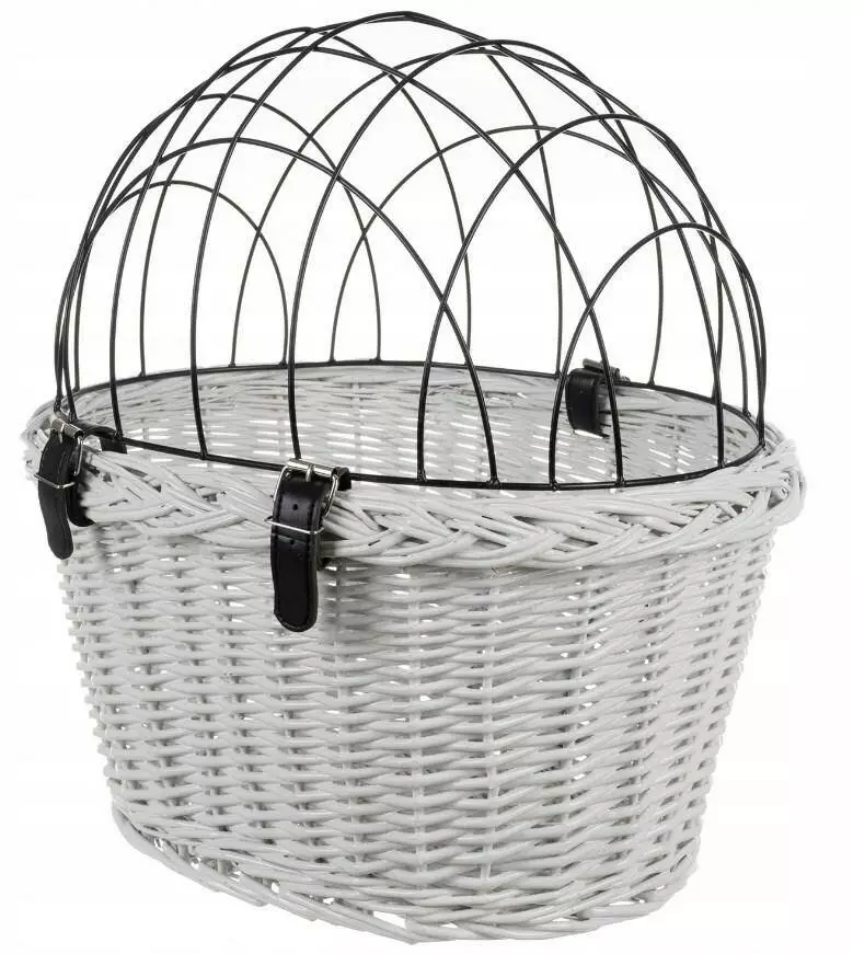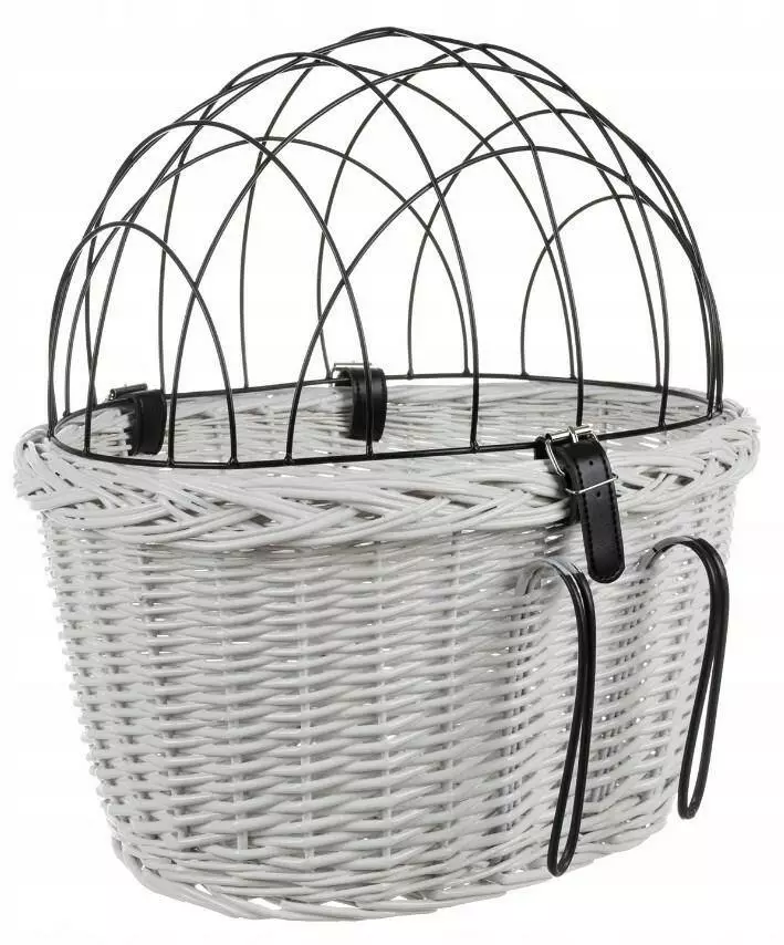 Велосипедний кошик для тварин з лози з металевим плафоном і ременями з екошкіри - ідеальне рішення для всіх, хто хоче безпечно і стильно перевозити свого улюбленця на велосипеді. Завдяки високоякісним матеріалам і ретельному виготовленню кошик забезпечує комфорт, безпеку і довговічність, а його елегантний зовнішній вигляд робить його ідеальним доповненням до будь-якого велосипеда. Велосипедний кошик з сіткою ідеально підходить для перевезення різних дрібних домашніх тварин, не тільки собак. Більшість котів середнього розміру почуватимуться комфортно та безпечно в кошику з решіткою. Маленькі та середні кролики можуть подорожувати в кошику, оскільки це забезпечить їм достатньо місця для сидіння. Деякі дрібні рептилії, такі як ящірки і черепахи, також можна перевозити в кошику. Будь ласка, пам’ятайте, що під час транспортування тварин їм завжди слід забезпечити належний комфорт, безпеку та вентиляцію. Перед кожною поїздкою варто переконатися, що тварина звикла до їзди у кошику велосипеда.