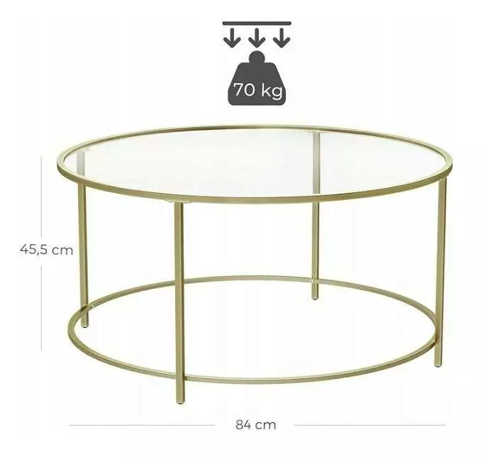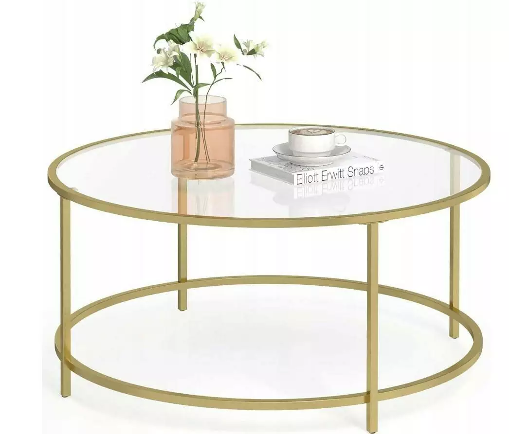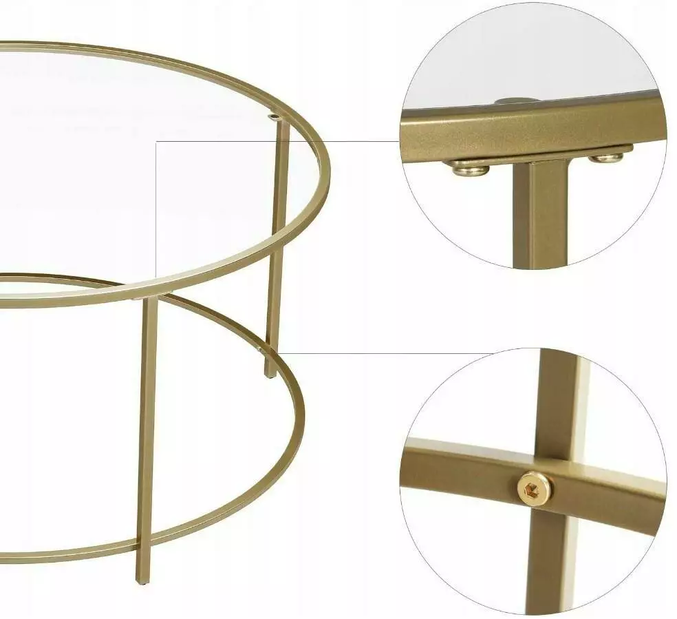 VASAGLE Стіл круглий, журнальний, скляний стіл з металевим каркасом, золото загартоване скло LGT21G