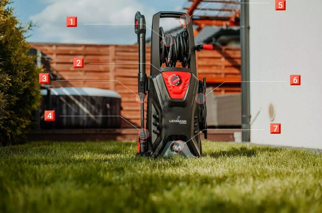 Завдяки функції Auto-Stop мийка високого тиску Lehmann Jukon працює лише тоді, коли ви цього хочете. Після відпускання курка пістолета двигун автоматично вимикається і перекриває потік води. Ви не витрачаєте воду, електроенергію чи час.