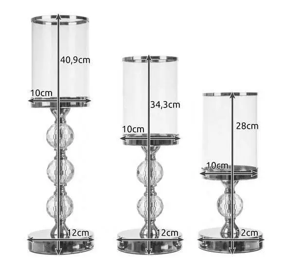 3 РІЗНИХ ВИСОТИ + КРИШТАЛЕВІ АКСЕСУАРИ - свічники на ніжці мають 3 різні висоти, кожен з них має декоративну імітацію кристала на ніжці, в залежності від висоти, маленький - один, середній - два, великий має три кристали .