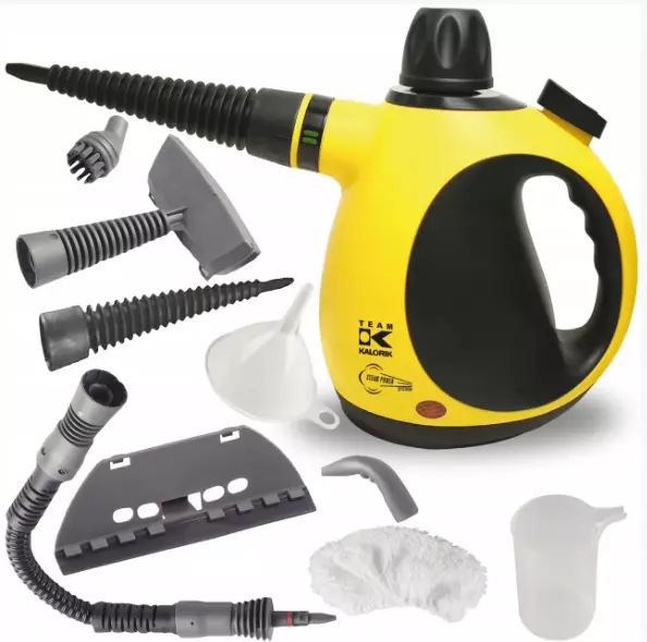 багатофункціональний пристрій KALORIK обладнане резервуаром для води об'ємом 350 мл, має компактну форму, має контрольну лампочку та працює з максимальною потужністю 1000 Вт. Завдяки цьому ви можете повністю відмовитися від хімікатів для чищення і мийних засобів. Гаряча пара забезпечує гігієнічне очищення, а вимиті поверхні вільні від хвороботворних мікроорганізмів, як-от бактерії, грибки та віруси.
