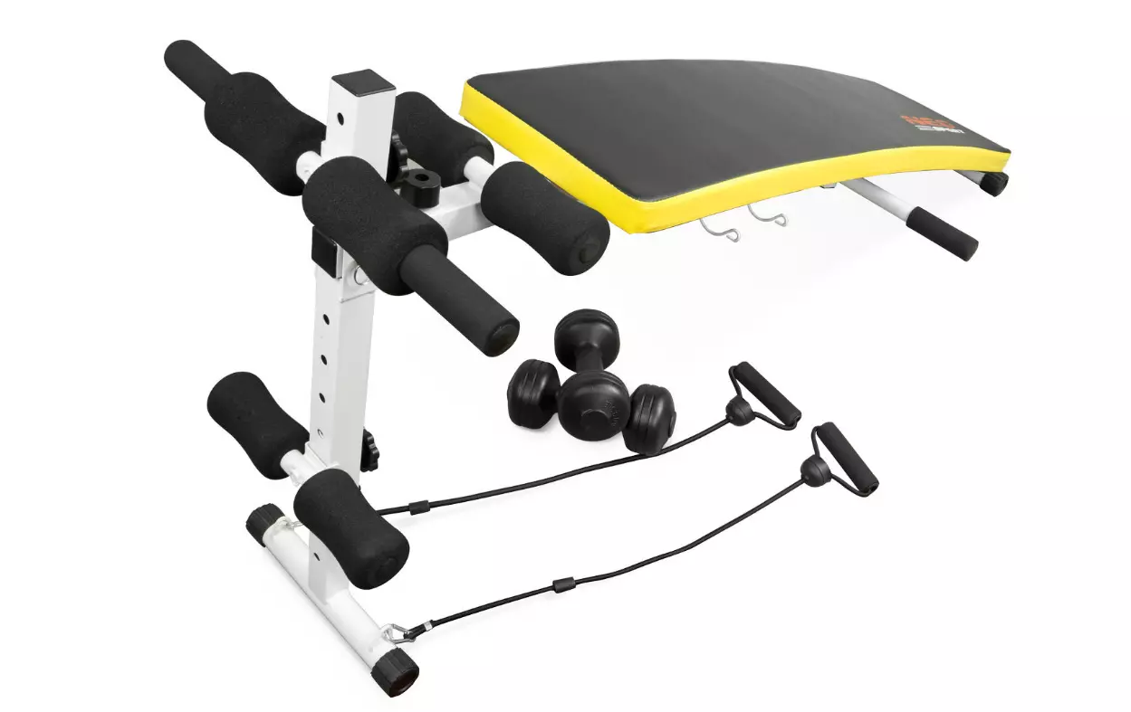 Стабільна металева конструкція гарантує безпеку та максимальну стійкість під час використання лавки. Регулювання висоти ніг дає вам повну свободу настроювання обладнання відповідно до вашого стилю та набору вправ. Завдяки механізму швидкого складання лавка в складеному вигляді займає обмаль місця.
