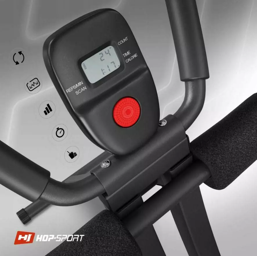 Тренажер оснащений лічильником тренувань, де ви можете відстежувати свій прогрес тренувань: тривалість, спалені калорії, кількість повторень і середню кількість повторень за хвилину. Усі функції комп’ютера описані в інструкції, що додається до тренажера.