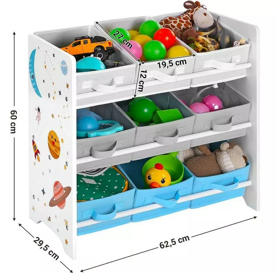 Полиця, кольори якої ідеально впишуться в дитячу або ігрову кімнату. Полиця складається з 9 знімних відділень, які полегшать сортування іграшок, книг та інших речей вашої дитини.