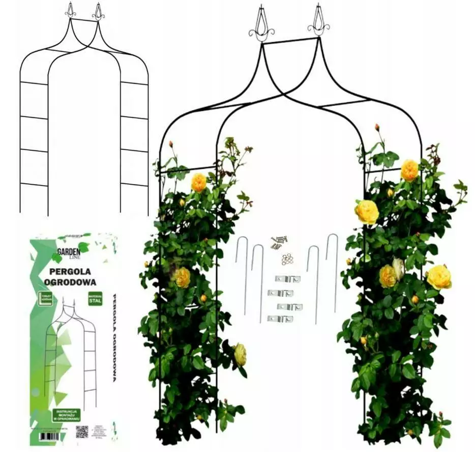 Якісна арка буде красиво виглядати у вашому саду. Стійкий до погодних умов, а завдяки порошковому фарбуванню прикрасить ваш сад. Все запаковано в оригінальну коробку.