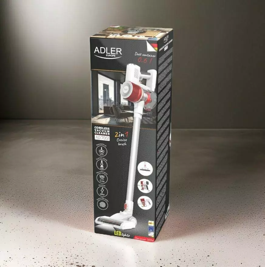 ❇️ Щілинна щітка 2 в 1 дозволяє ретельно очистити навіть найважче доступні місця. Додається вішалка для пилососа забезпечує легке та зручне зберігання пристрою. Ємність акумулятора 2200mAh гарантує тривалий час роботи та швидку зарядку. Adler AD 7051, інноваційний бездротовий пилосос, який поєднує в собі потужність, ефективність і простоту використання.