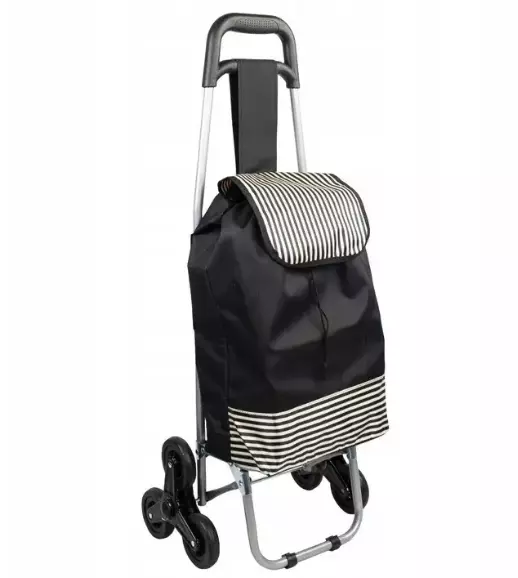✅візок для покупок на трьох колесах 40 / 30 / 92 см — чорний триколісний візок для покупок із сумкою, прикріпленою на липучці.