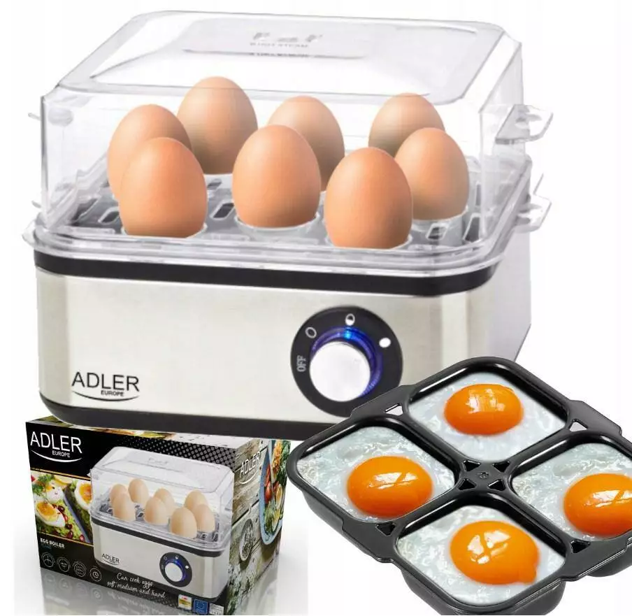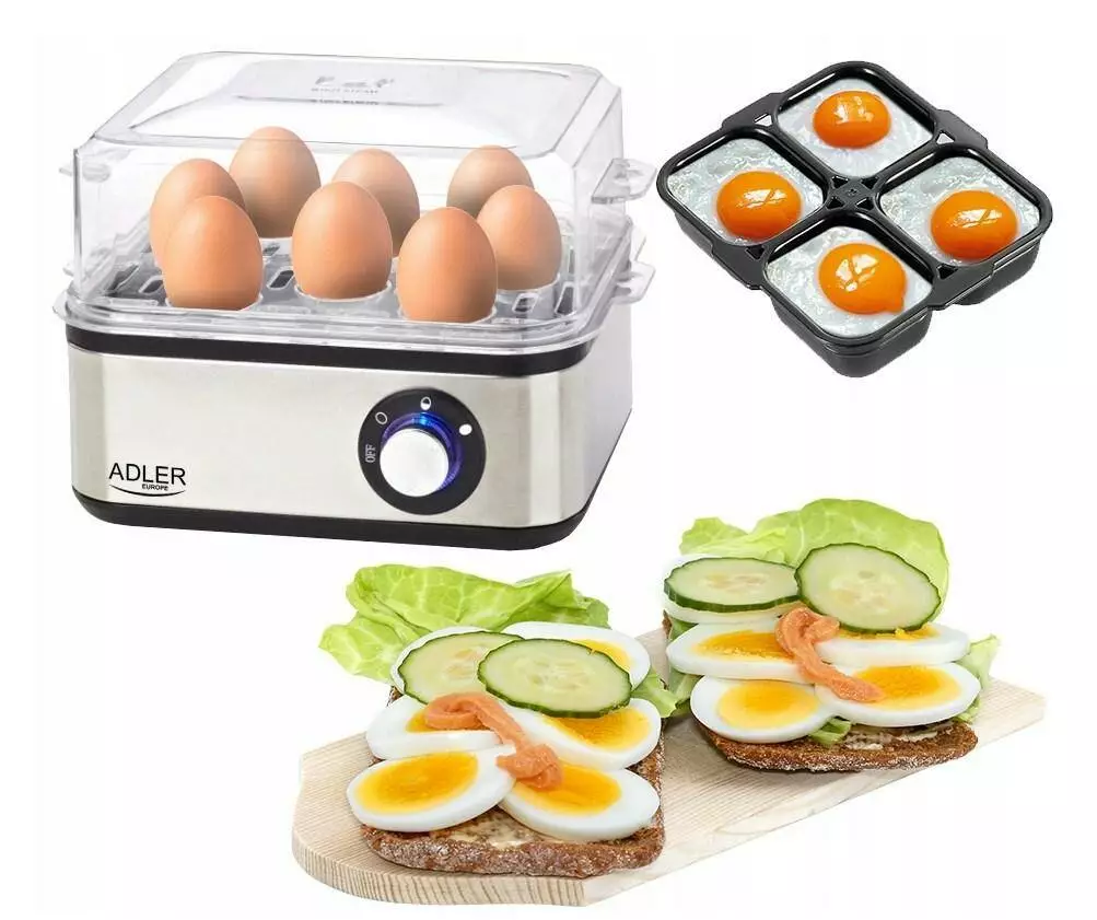 Ми всі знаємо, що яйця дуже поживні та містять багато цінних поживних речовин. Безумовно, у кожного з нас є свій улюблений спосіб приготування яєць на сніданок. Наш продукт є ідеальним рішенням для сімей і людей, які споживають велику кількість яєць, адже в ньому можна приготувати від 1 до 8 яєць за раз! Одним словом, приготування сніданку для всієї родини або напівфабрикатів для яєчного салату займе у вас всього кілька хвилин! У набір входить проколювач для яєць, завдяки якому ми уникнемо розбиття яйця під час приготування. Крім того, його невеликі розміри дозволять заховати пристрій в будь-яку шафу або полицю, що заощадить місце на кухонній стійці.