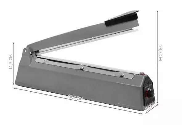 ТЕХНІЧНІ ХАРАКТЕРИСТИКИ – потужність 300 Вт; матеріал: залізо, інші: ПП + нержавіюча сталь + силікон; джерело живлення 220-240 В; довжина шва 300 мм; ширина шва 2 мм; час зварювання: 1-8 секунд; макс. товщина фолії/пакета: 0,4 мм; довжина кабелю: 115 см; розміри: 40,5 х 8 х 24,5 см; вага 1,55 кг; вага в упаковці: 1,85 кг.